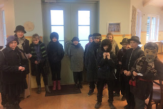 Asusime teele Sutlema lasteaia poole. Meil jäi küünal koolimajja ja Lore jooksis järgi ja tõi ära. Avastasime umbes Günteri maja juures. Kui me olime poe juurest edasi, siis võtsime vitsakimpe ühe murdunud puu juurest. Hoidsime neid käes ja midagi nendega ei teinud. Tee peal mõtlesime mõistatusi ja harjutasime teksti